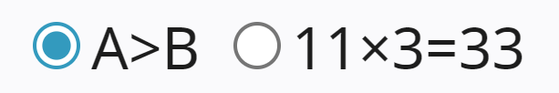 Figure 4. Two radio buttons – the first labelled "A>B", the second labelled "11×3=33".